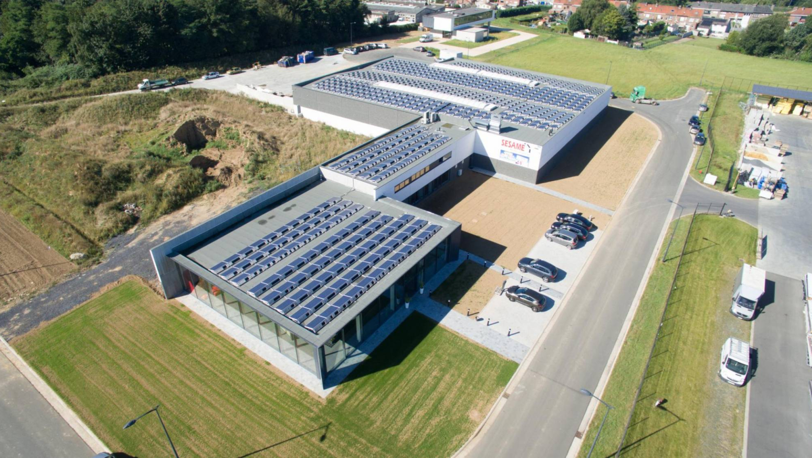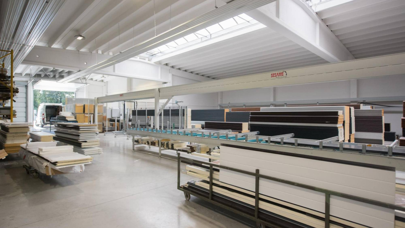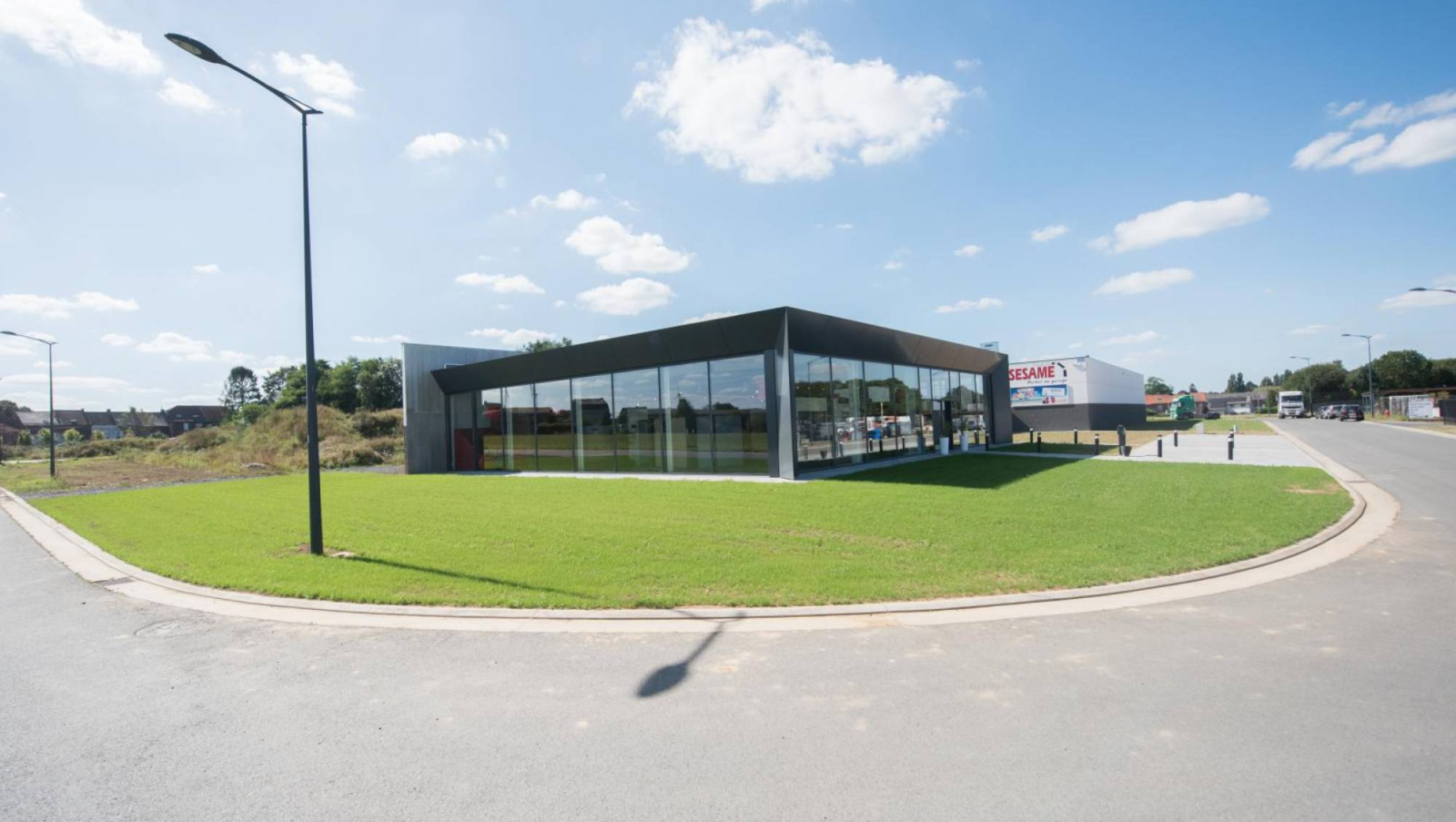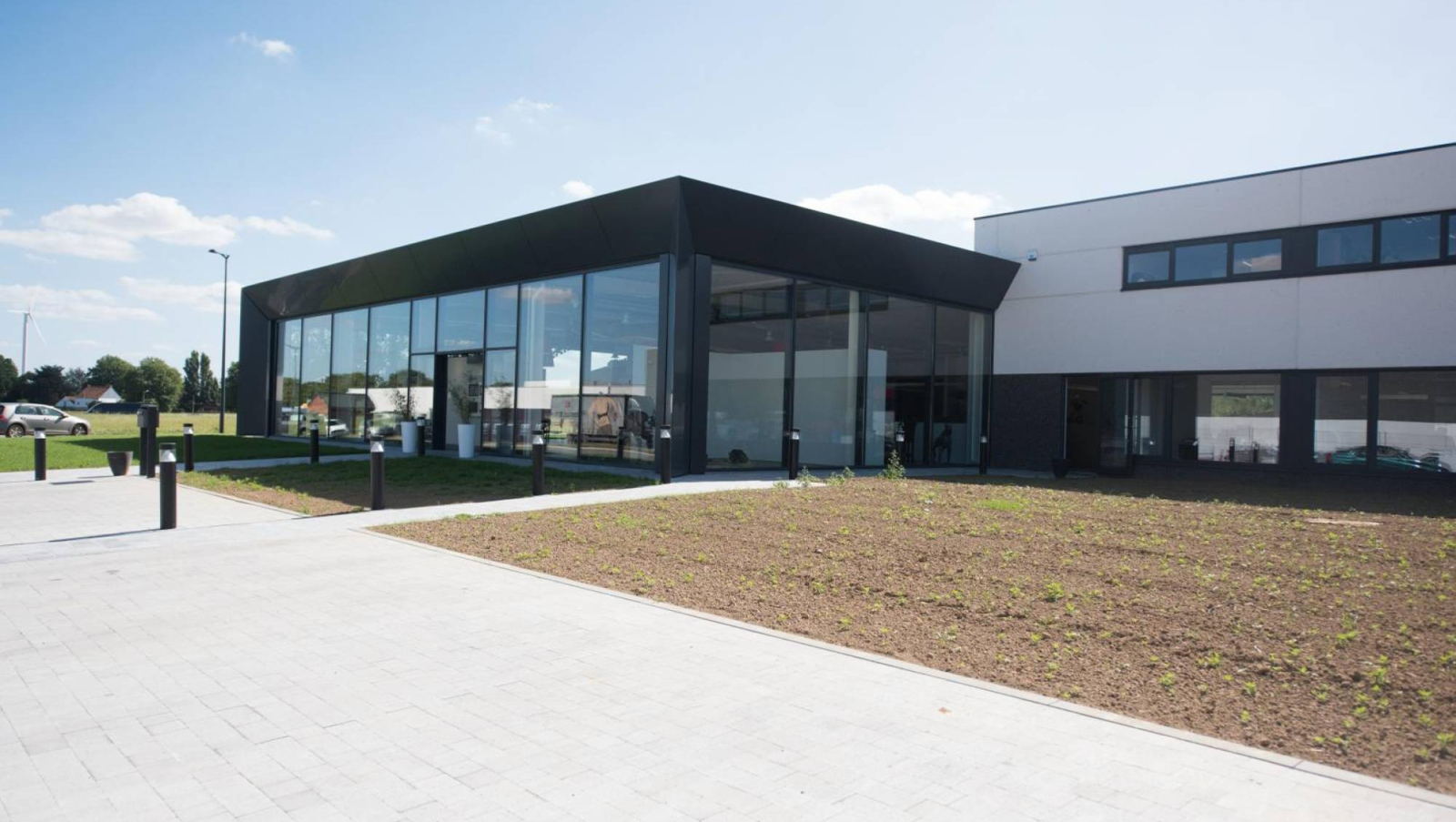 Voor een fabrikant van sectionaalpoorten werd een volledig nieuw bedrijfsgebouw opgetrokken in Leuze-en-Hainaut. Het totaalplaatje omvat zowel een groot atelier en stockageruimte als een kantoorgedeelte en een verkoopsruimte. Niettegenstaande het gebouw een eenheid vormt, zijn deze drie verschillende functies perfect afleesbaar langs de buitenzijde. Iedere functie kan autonoom fungeren en laat eigen circulatie toe. Het concept is bovendien zo opgevat dat eventuele uitbreidingen in de toekomst makkelijk realiseerbaar zijn.